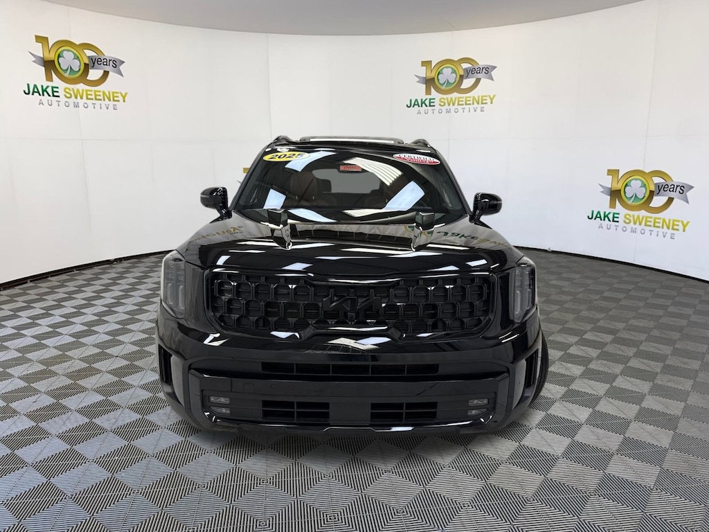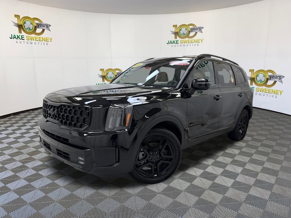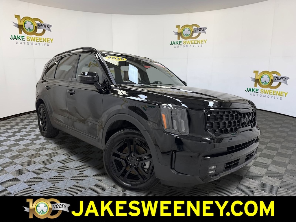 A family favorite, our 2025 Kia Telluride SX Prestige X-Line AWD in Ebony Black brings bold comfort to your crew's next adventure! Motivated by a 3.8 Liter V6 generating 291hp for an 8 Speed Automatic transmission that puts muscular capability at your command. Also able to return nearly 23mpg on the highway, this All Wheel Drive SUV boasts increased ground clearance and a center-locking differential to help answer the call of the wild. Our Kia combines style and substance by showing off rugged X-Line details, dual sunroofs, LED lighting, fog lamps, gloss-black 20-inch wheels, a hands-free liftgate, and high-utility roof rails.