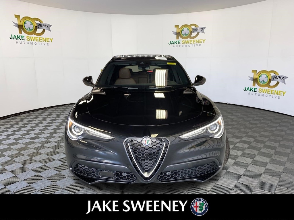Fierce yet functional, our 2023 Alfa Romeo Stelvio Ti AWD is a fantastic driver's machine in Vulcano Black Metallic! Motivated by a TurboCharged 2.0 Liter 4 Cylinder delivering 280hp paired to a paddle-shifted 8 Speed Automatic transmission for premium performance with a top speed of 144mph. You're in complete command of the road and trail in this All Wheel Drive SUV that also returns nearly 28mpg on the highway. Bold Italian design is another benefit with our Stelvio, which shows off a V-Scudetto grille, adaptive bi-xenon headlamps, a dual-pane sunroof, LED lighting, dual exhaust outlets, a hands-free tailgate, and a sporty Vesuvio Gray body kit.